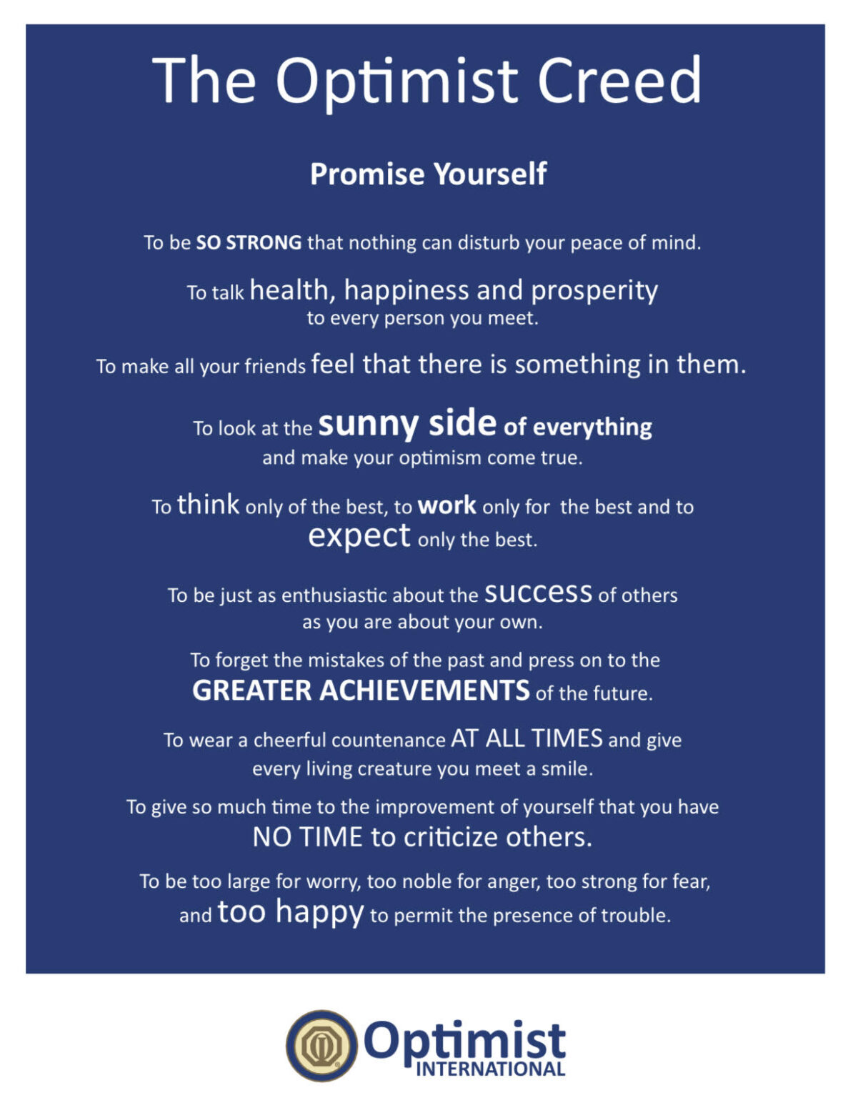 Experience the power of optimism with positive people creating positive change in your community. You will find happiness, purpose and accomplishment in a way that no other organization can equal.